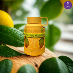 Thiết kế chai của Armaf Odyssey Go Mango vẫn theo phong cách chiếc ly giữ nhiệt đặc trưng của dòng Odyssey, nhưng với một diện mạo nhiệt đới đầy ấn tượng. Tông màu chủ đạo là Vàng Cam rực rỡ, tượng trưng cho màu của thịt xoài chín và ánh nắng mặt trời. Thân chai được bọc một lớp vỏ họa tiết màu vàng mù tạt. Trên lớp vỏ này in nổi các họa tiết lá cây nhiệt đới tinh tế. Hai bên hông của lớp vỏ có các đường cắt hình oval, để lộ phần thân chai bên trong có màu chuyển sắc Gradient từ xanh lá sang vàng cam, mô phỏng màu sắc tự nhiên của vỏ quả xoài. Dải đai màu xanh cốm chạy ngang thân chai với dòng chữ “ODYSSEY GO MANGO” màu vàng kim loại, tạo điểm nhấn nổi bật và sang trọng. Tổng thể, đây là một thiết kế trẻ trung, bắt mắt và tràn đầy năng lượng sống.